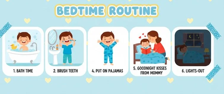 For significant improvements, consider incorporating a reward chart alongside the visual schedule. For more on rewards charts, see my blog article, Using Rewards Charts to Conquer Sleep Challenges.